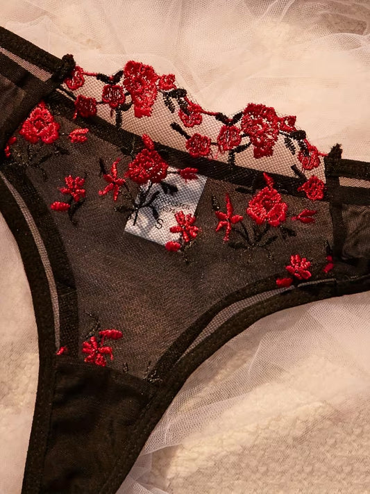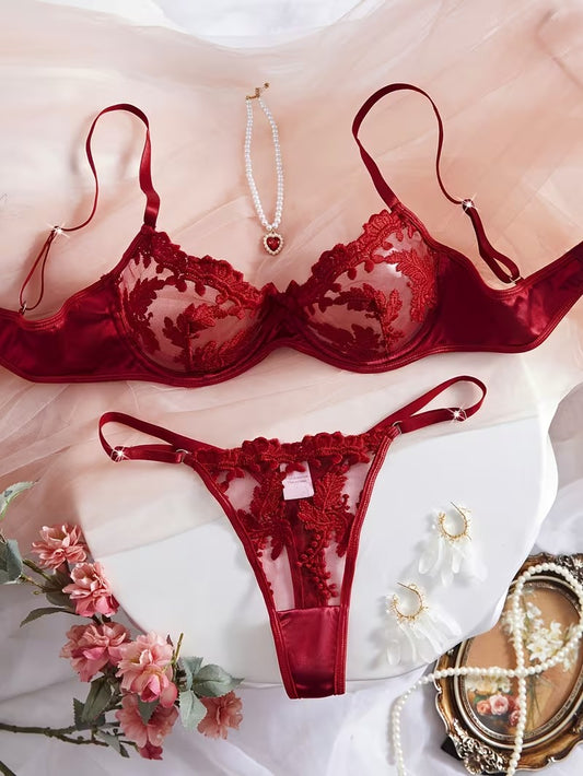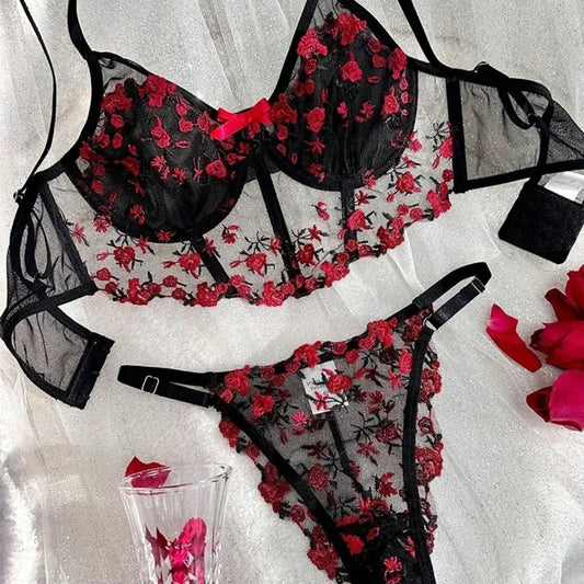 Flourish Sexy Elegant Flower Lace Lingerie Set – Soft Mesh Floral Embroidered Bra & Panty 9987