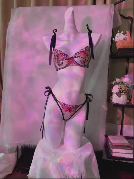 Flourish New Lace-Trimmed, Embroidered Butterfly Pattern, Single-Layer Ultra-Thin Bra And Underwear Set