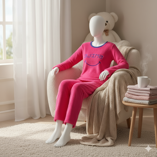 Flourish Fleece Winter Pajama Set – Hot Pink Smile Edition