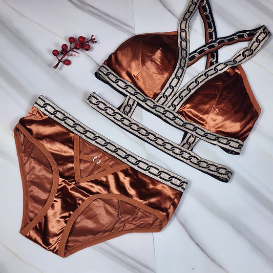 Flourish New High Quality Chain Style Straps Front Metal Wired Bra & Panty Set 1127