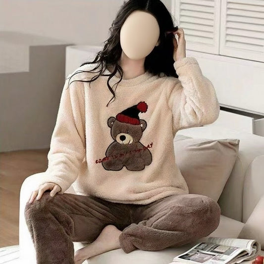 Flourish Cute Winter Teddy Fleece Loungewear Set – Soft & Cozy Night Suit