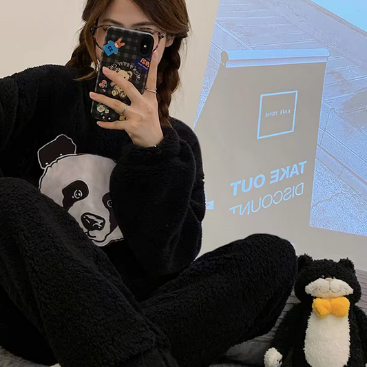 Flourish Cozy Panda Fleece Loungewear Set – Ultra Soft Winter Night Suit