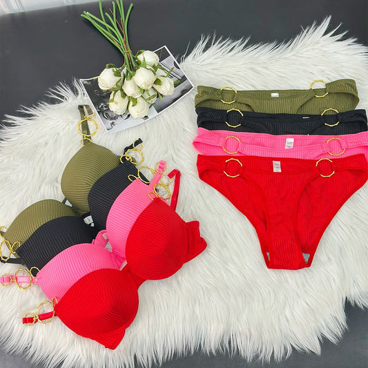 New High Quality Sexy Metal Rings Straps With Adjustable Straps Back Closure Push-Up Bra & Panty Set 196