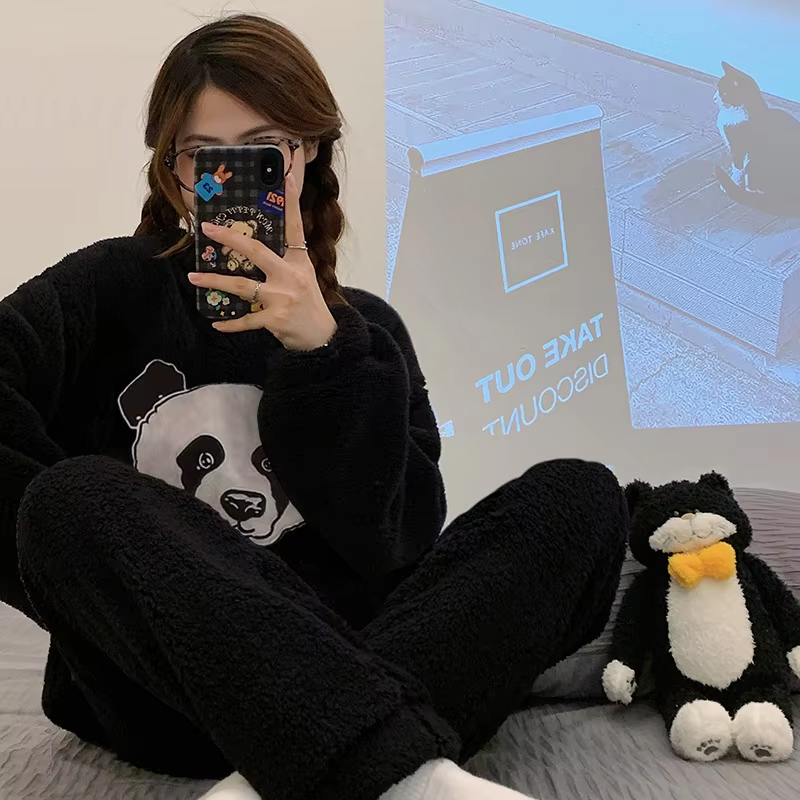 Flourish Cozy Panda Fleece Loungewear Set β Ultra Soft Winter Night Suit
