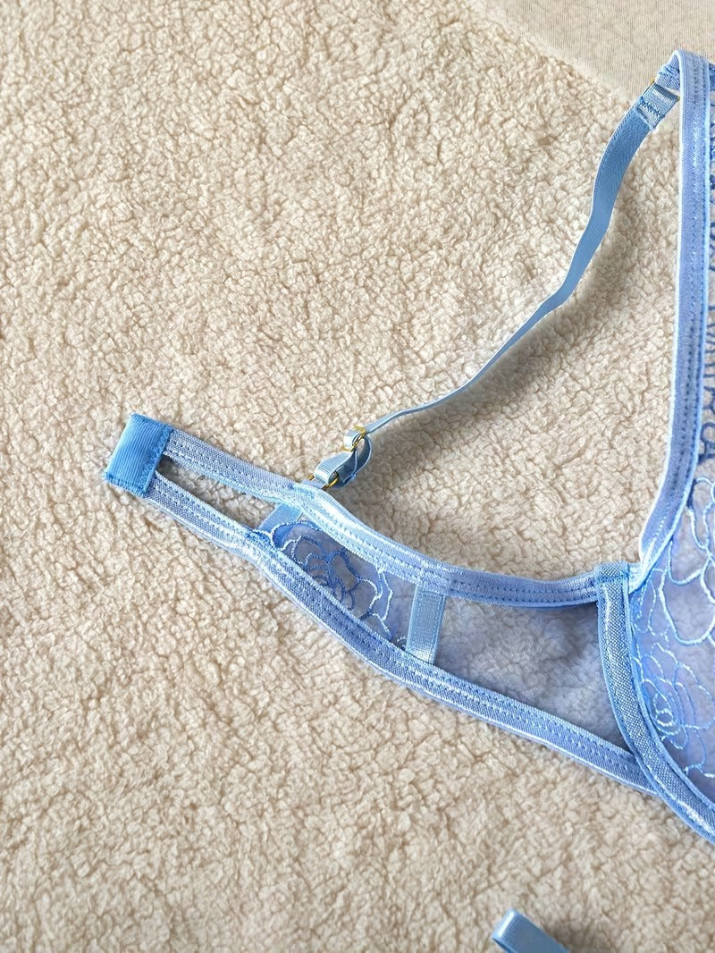 Step into effortless elegance with the Flourish New Style lingerie set, designed to blend sensual charm with delicate femininity. Crafted from soft, sheer mesh and detailed with intricate floral lace embroidery, this set highlights your natural curves while offering a lightweight, breathable feel.