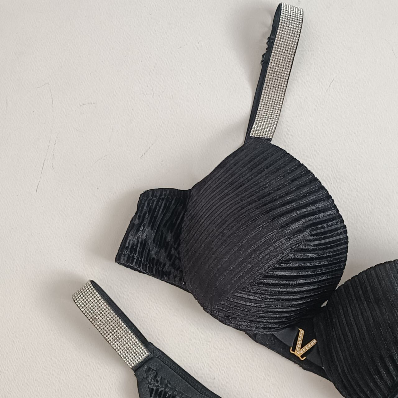 Flourish Velvet Shine Bra & Panty Set – Luxury Rhinestone Strap Lingerie 2022