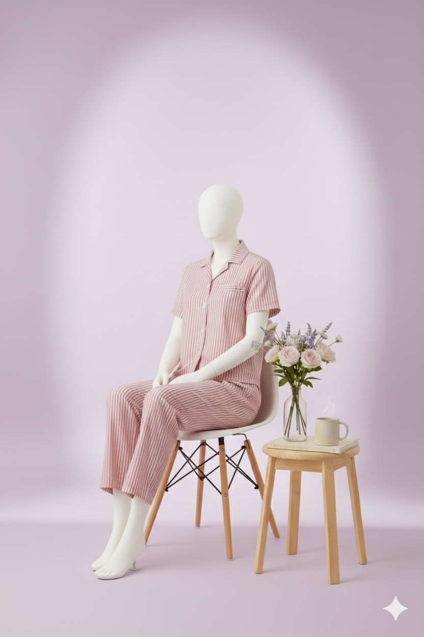 Flourish Women’s Linen Pajama Set – 2-Piece Vertical Striped Pajama Set Print Nightwear