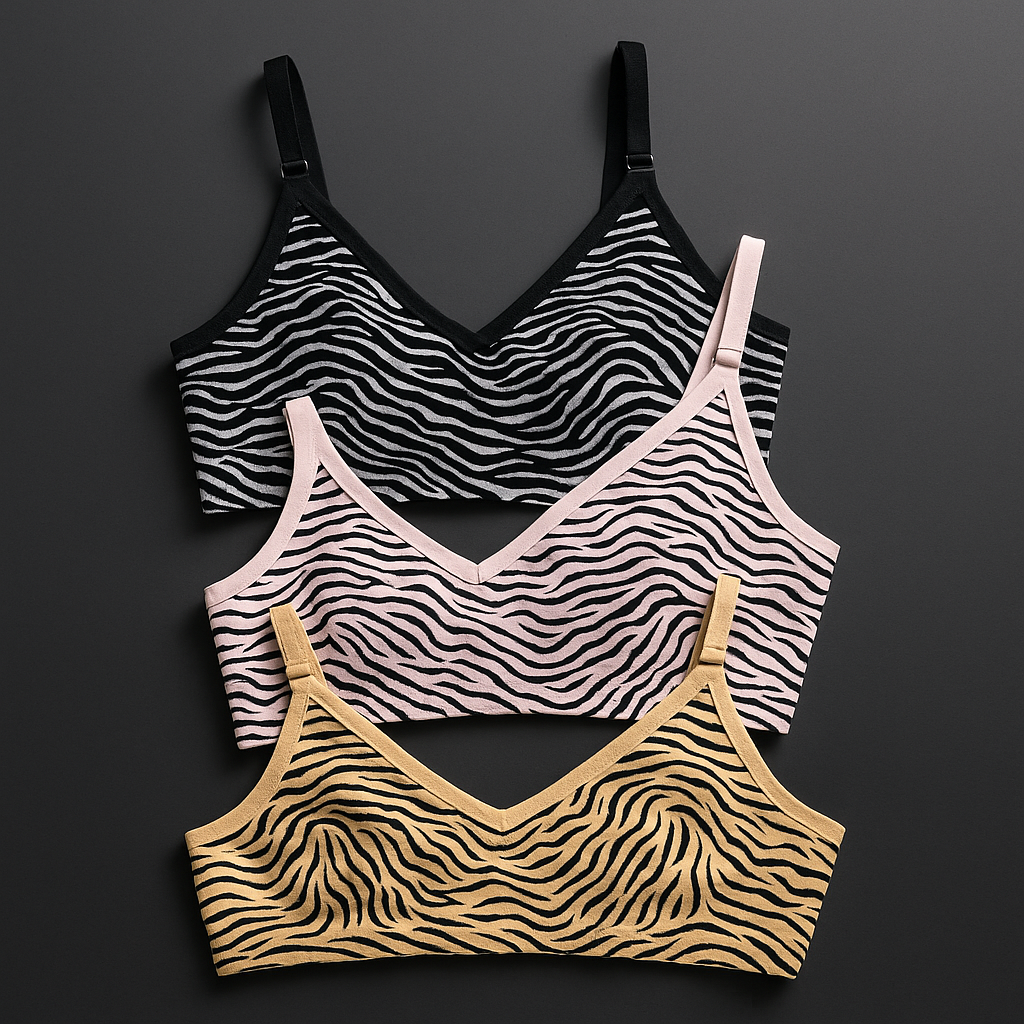Pack Of 3 Women’s Zebra Print Cotton Bralette – Non-Padded | Soft, Stretchable & Stylish Everyday Bra